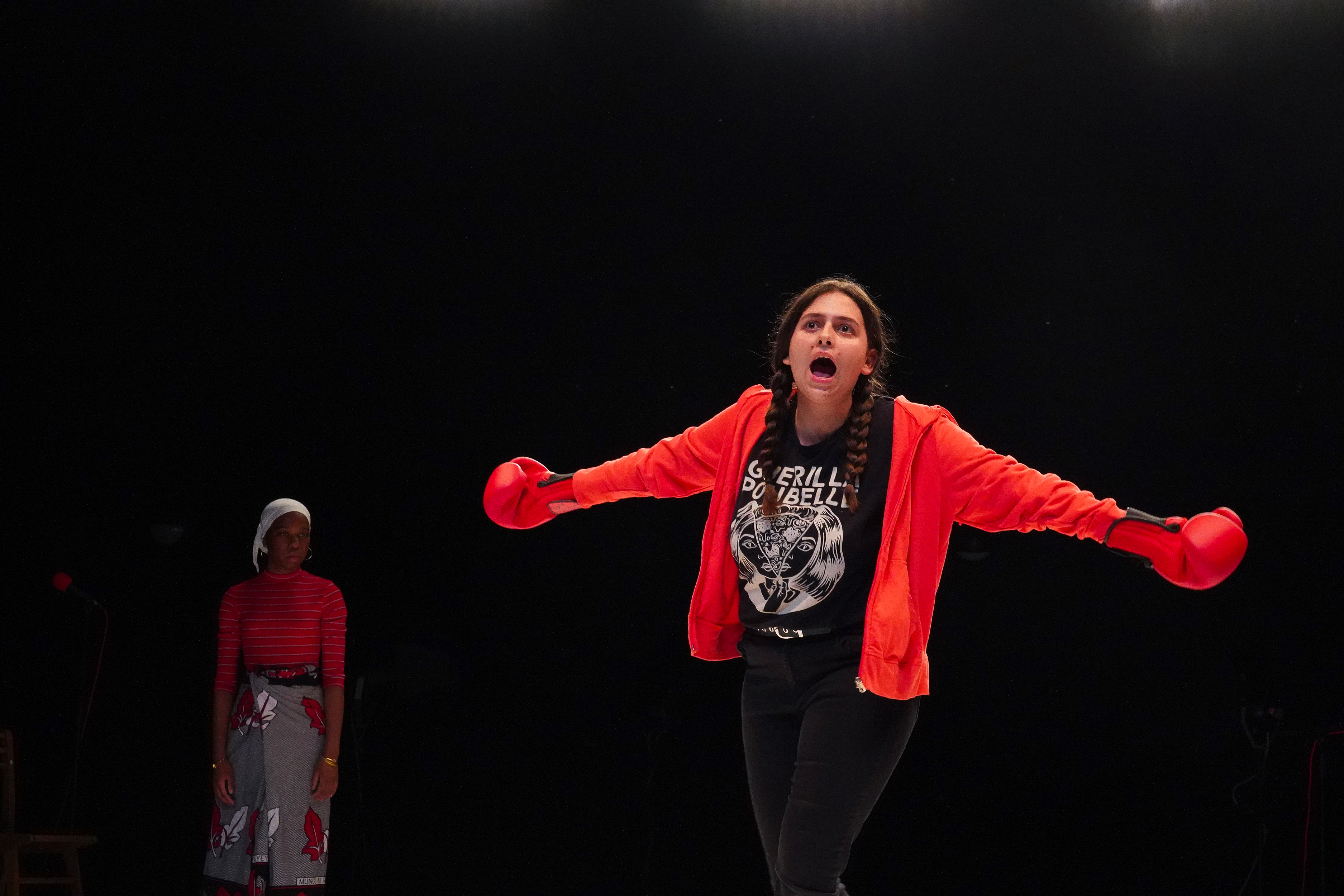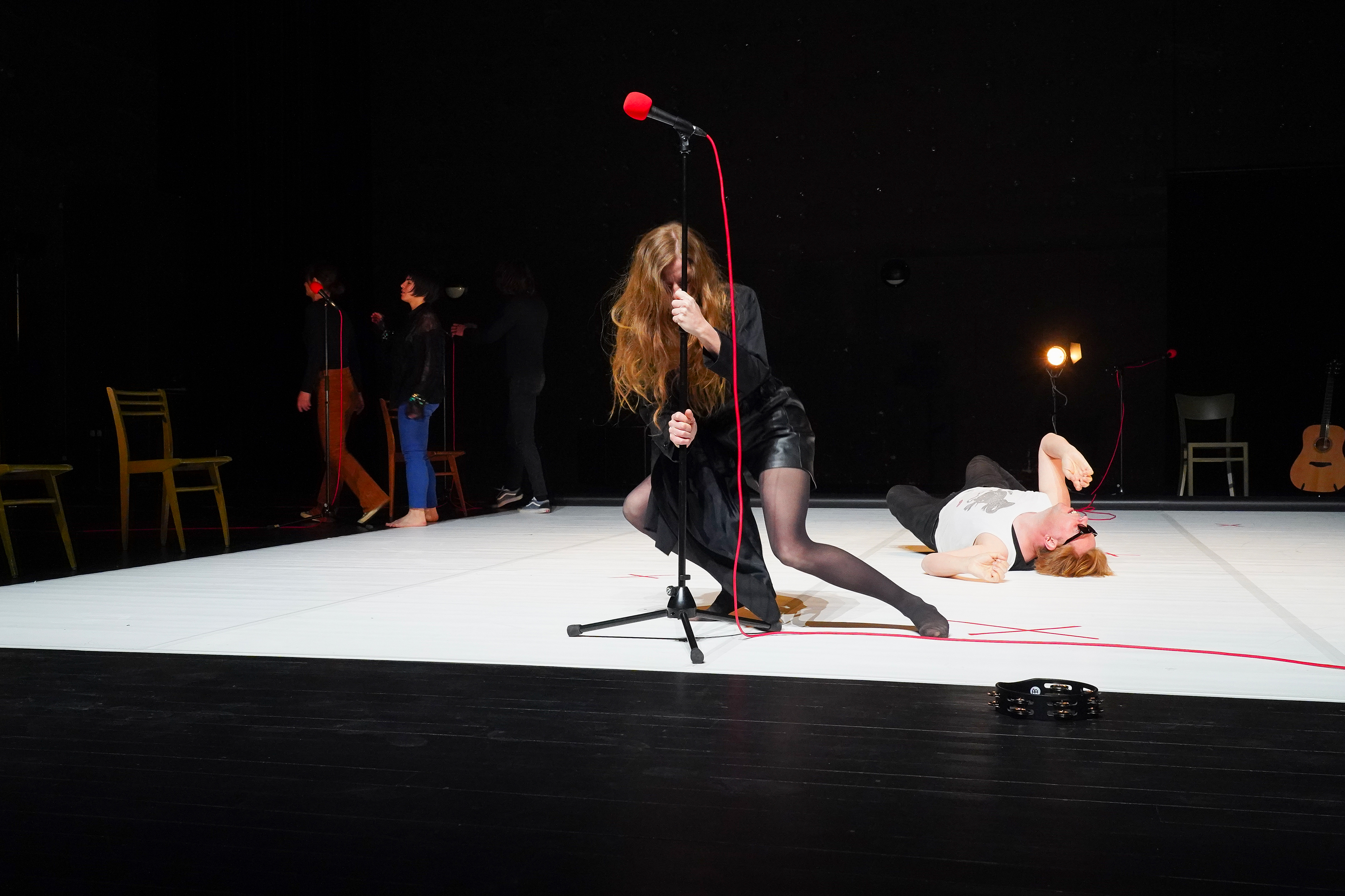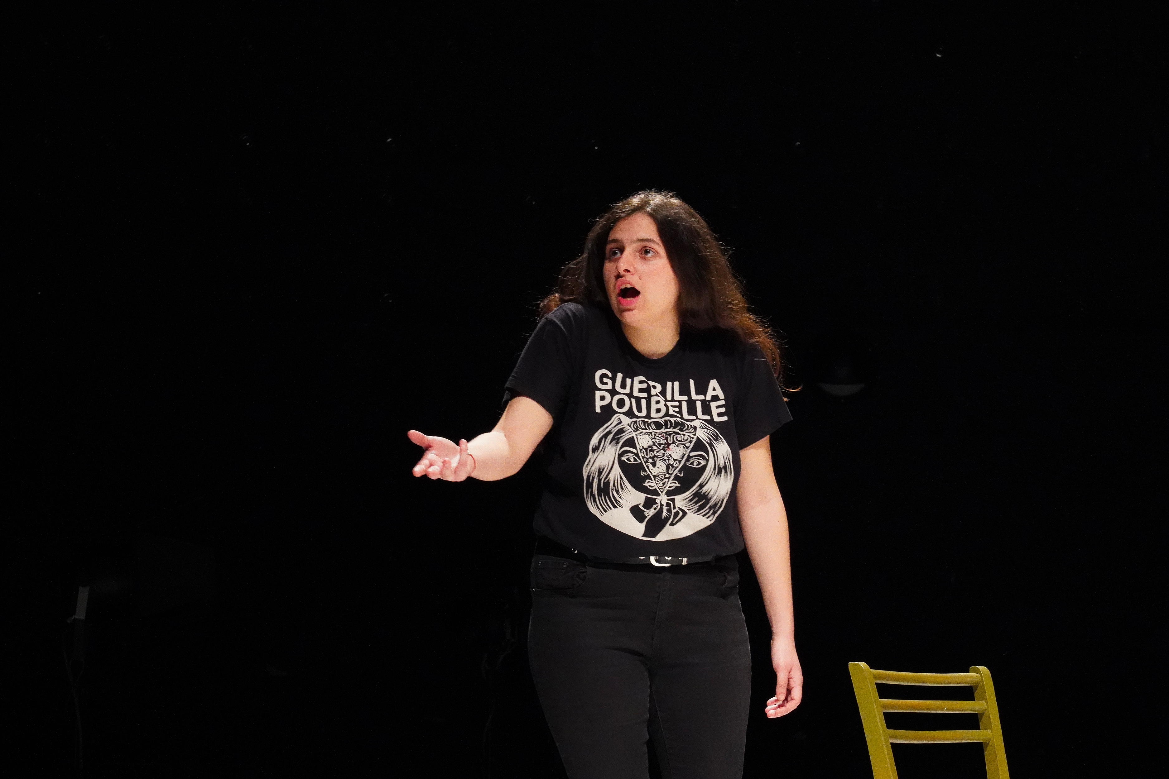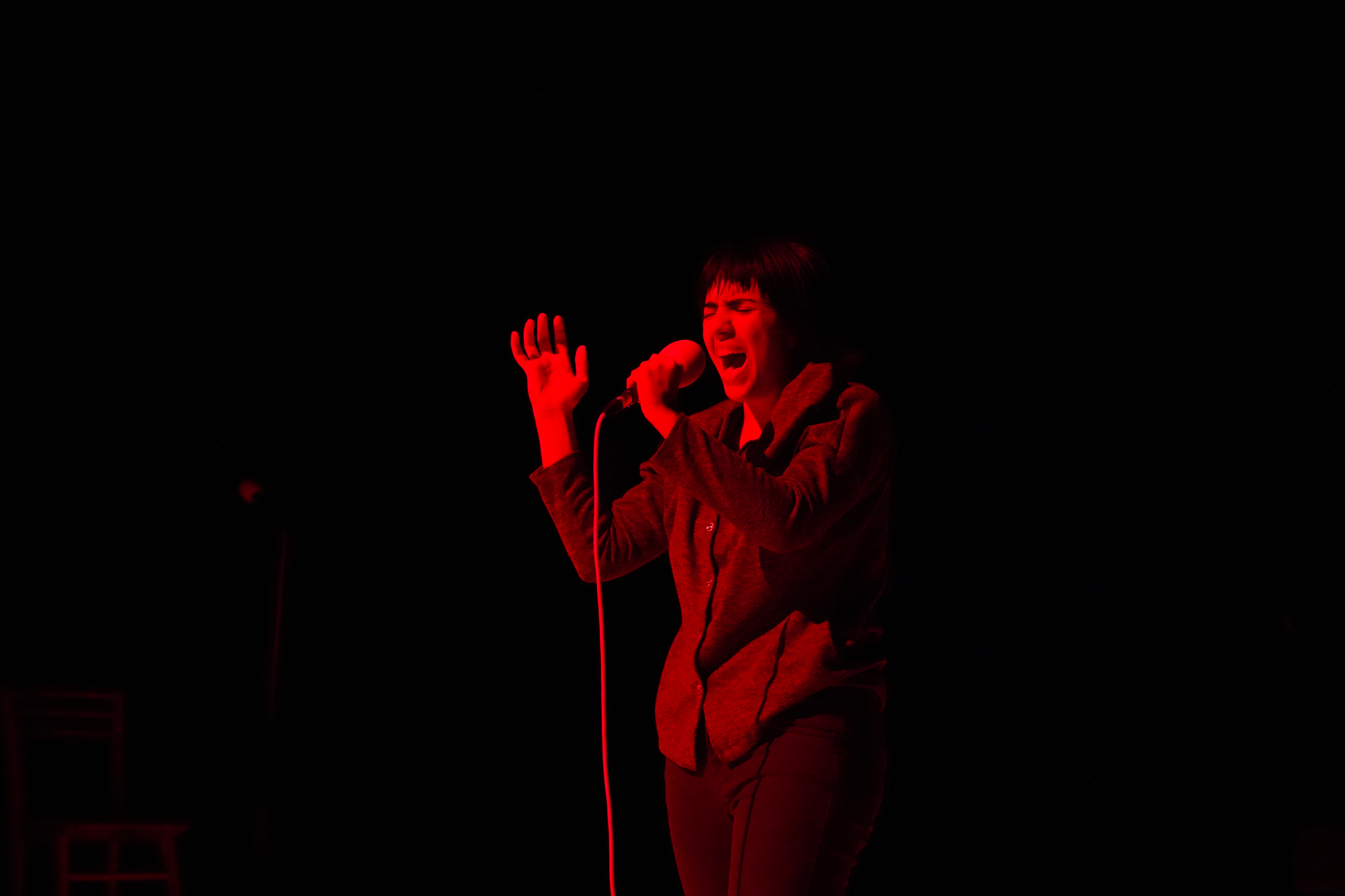 Les artistes qui constituent ici un plateau hétérogène, parfois dissonant (une comédienne, un musicien et un chœur d’acteur.ice.s) feront l’expérience de cette poétique du cri, du poing, de la gifle, s’interrogeant tout particulièrement sur ce que peut dire un corps, à un moment donné, de l’état du monde et de l’Histoire.