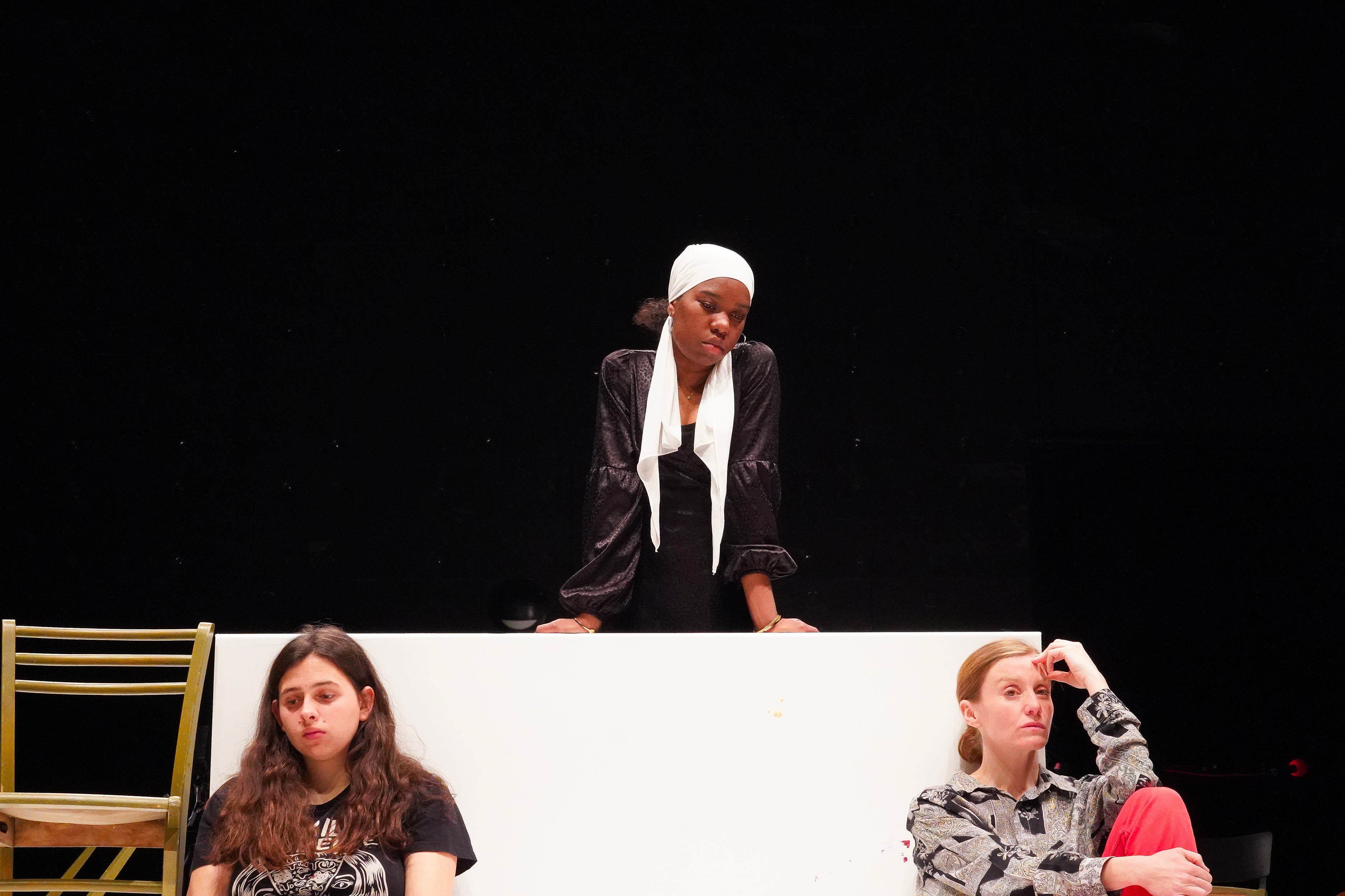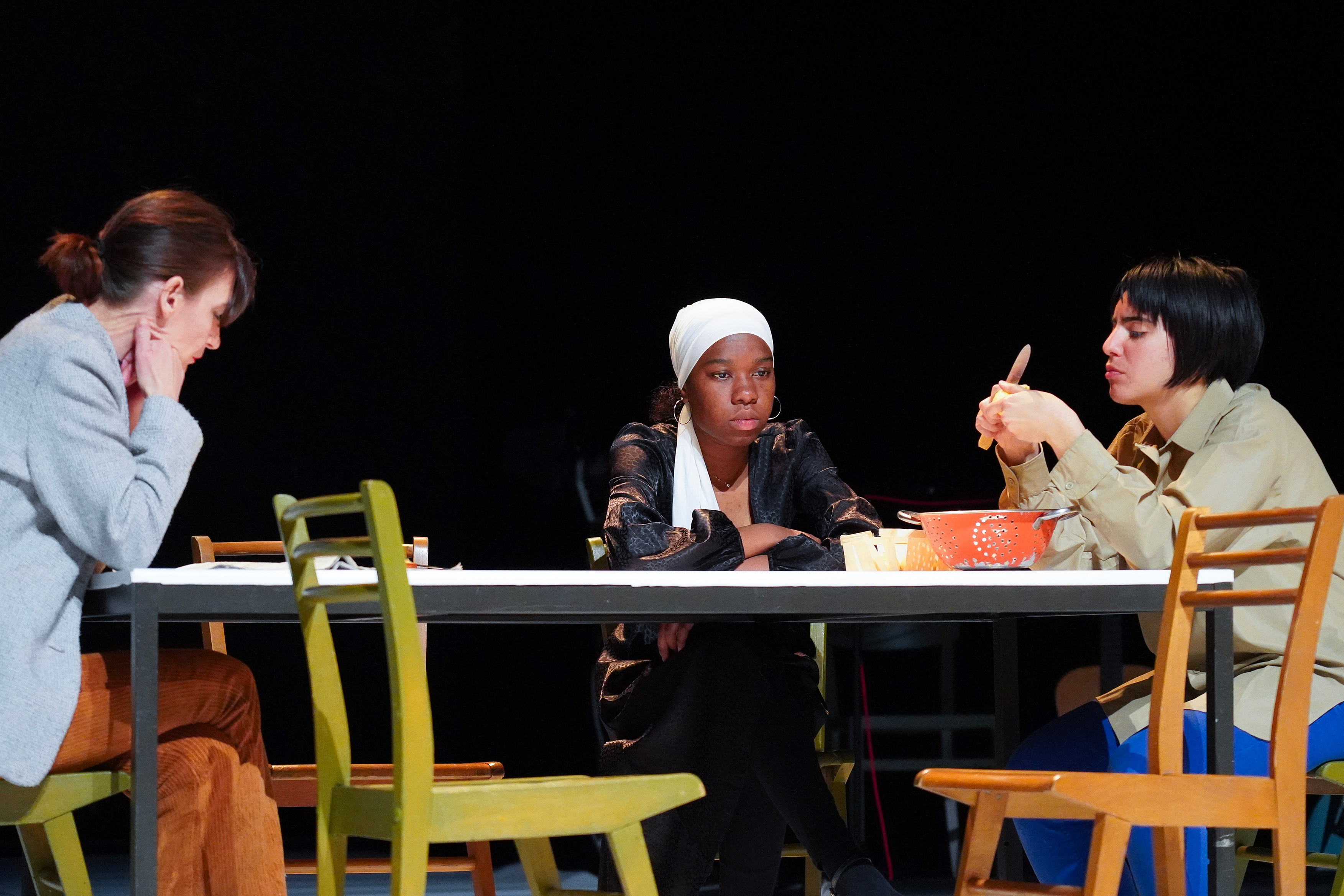 C’est ce souffle particulier qu’incarneront les interprètes, deux professionnels et quatre comédiens en apprentissage ou amateurs, invoquant ces figures devenues totems, portés par une partition où le texte circule librement de l’incarnation à l’incantation, de l’adresse au chant, en passant par le chœur.